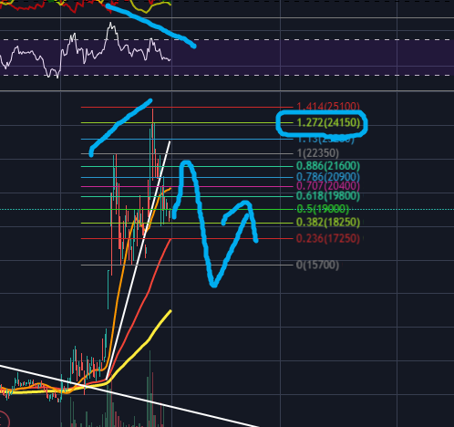 지난분석대로 피보나치 1.272 익스텍션 부근까지 상승 후 조정을 하고 있습니다.