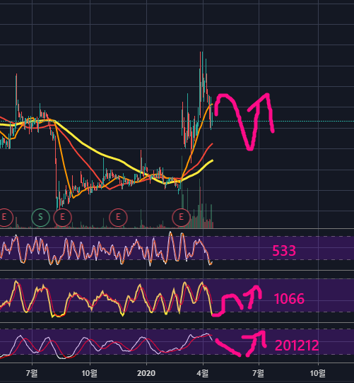 지지를 받게되면 201212는 외바닥을 형성하며 골든크로스, 1066은 저점을 높이는 쌍바닥을 만들며 골든크로스가 나오며 큰 상승을 기대할 수 있어보이네요.