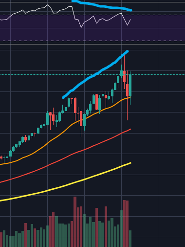 신고점을 갱신하면 더 이상 매물대로인한 저항은 없기 때문에 더한 상승을 기대할 순 있겠지만, 여기가 고점이라는 생각도 가지셔야 합니다.