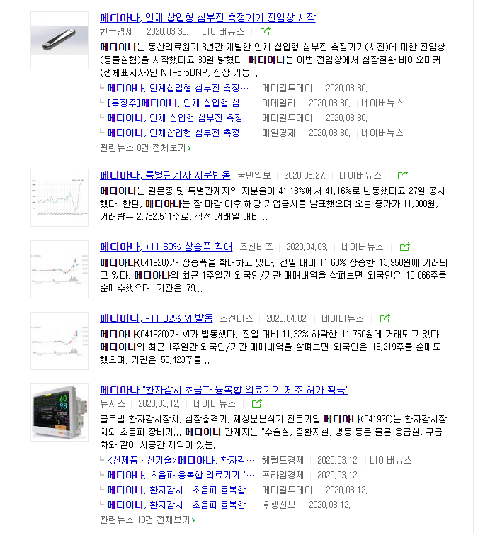 위의 뉴스를 보면, 메디아나는 인체삽입형 심부전 측정 측정기기 전임상 시작을 하였다고합니다. 또한 환자감시, 초음파 융복합 의료기기 제조 허가 획득도 했다는 내용이 있네요. 의료부문으로 많은 이슈가 있는 회사로 보입니다.