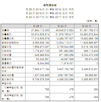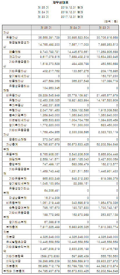 자산과 부채가 꾸준히 증가하고 있으며, 부채의 자산대비 비중이 낮은 상태입니다. 꾸준히 성장하는 회사인 것 같습니다.
