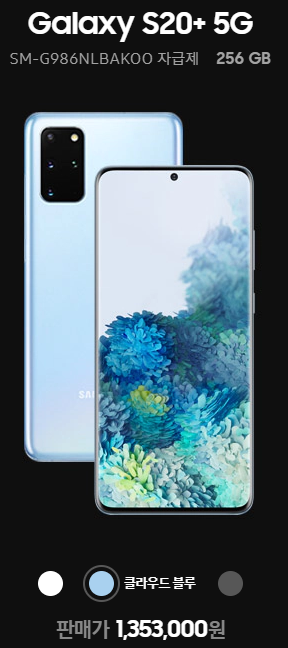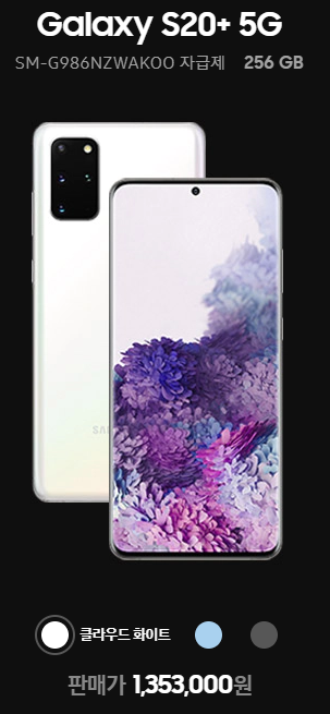 갤럭시 S20+ 5G는 클라우드 화이트, 클라우드 블루, 코스믹 그레이