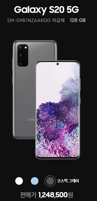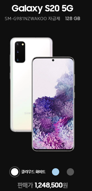 갤럭시 S20 5G는 클라우드 화이트, 클라우드 블루, 코스믹 그레이