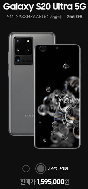 갤럭시 S20 울트라 5G는 코스믹 블랙, 코스믹 그레이