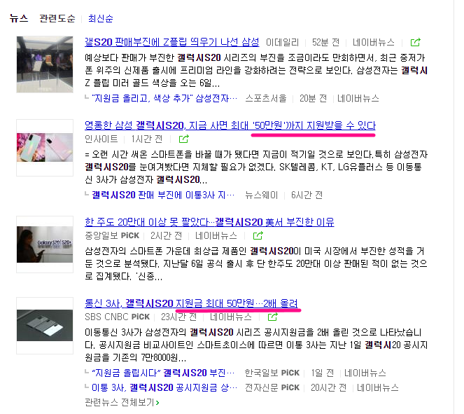 5월 1일부터 갤럭시s20 공시지원금이 대폭 인상되어 조건이 많이 좋아진 것 같습니다.