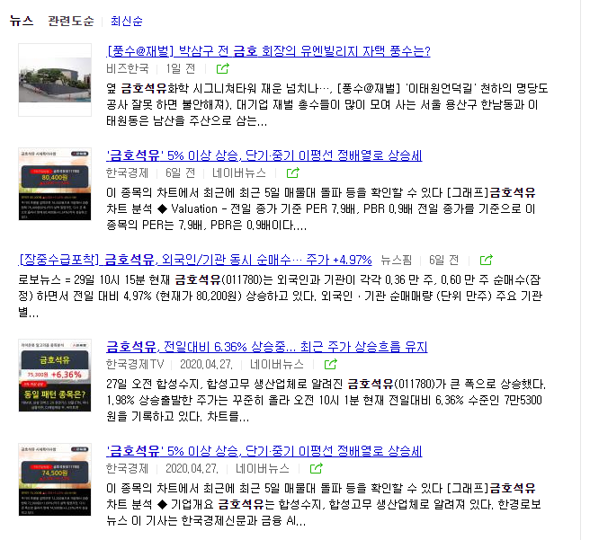금호석유 주가가 최근 급등하였다는 소식을 접하고, 부랴부랴 추격매수진입으로 고통받는 분들이 계실 것 같습니다.
