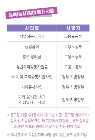 * 사업참여 중 취/창업으로 지원종료, 부정수급 등으로 중단되었더라도 참여 불가