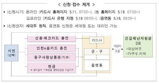 * 단, 5.11 부터는 신용/체크카드와 인천e음카드 중 한 가지만 신청 가능