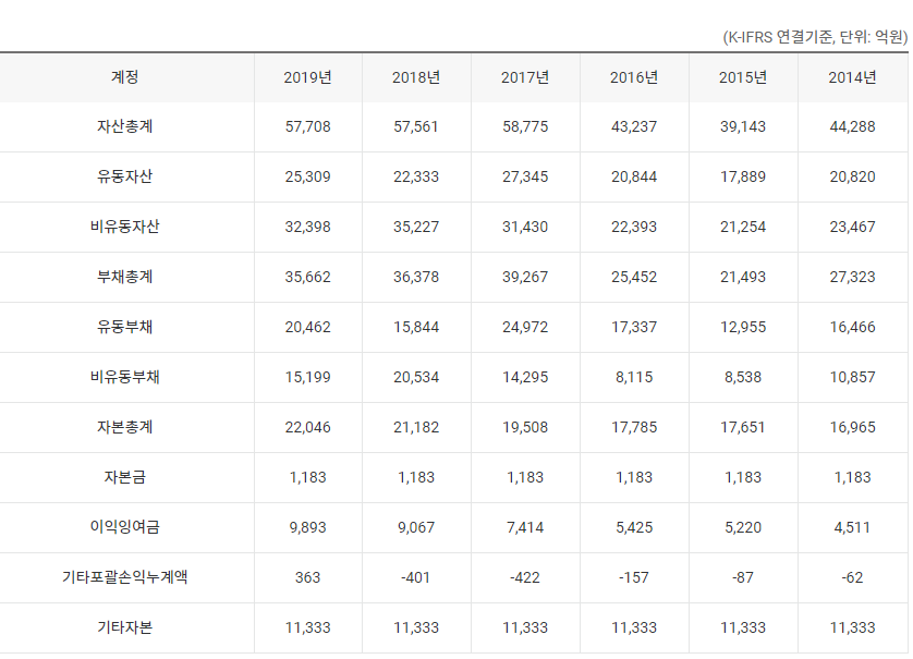 자산과 부채의 변동이 거의 없는 상태입니다. 부채의 자산대비 비중이 38.2%로 적지 않은 비중을 차지하고 있습니다.
