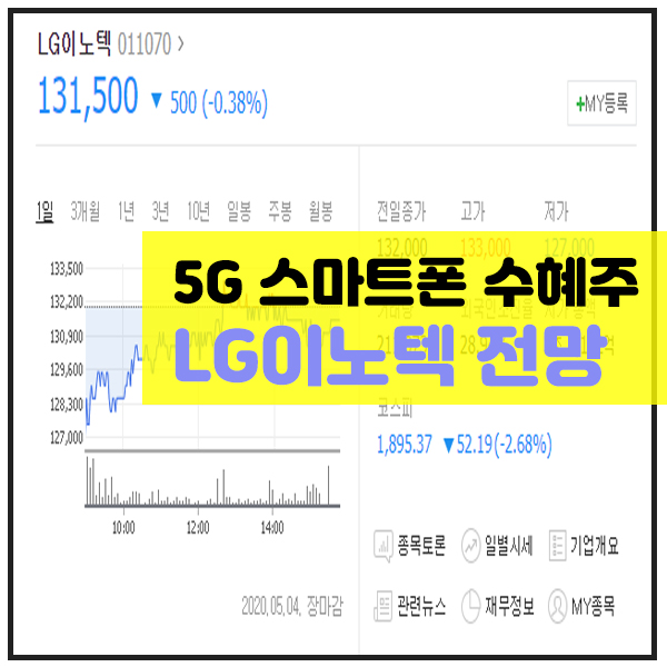 LG이노텍은 중국 스마트폰 판매 증가와, 하반기 신형 5G스마트폰 출시에도 수혜를 받을 것임을 알려주는 뉴스가 있으며, 여기에는 LG이노텍이 실적의 개선에 비해 저평가 되어있으며 비중을 확대할 것을 권고하는 내용이 있습니다.