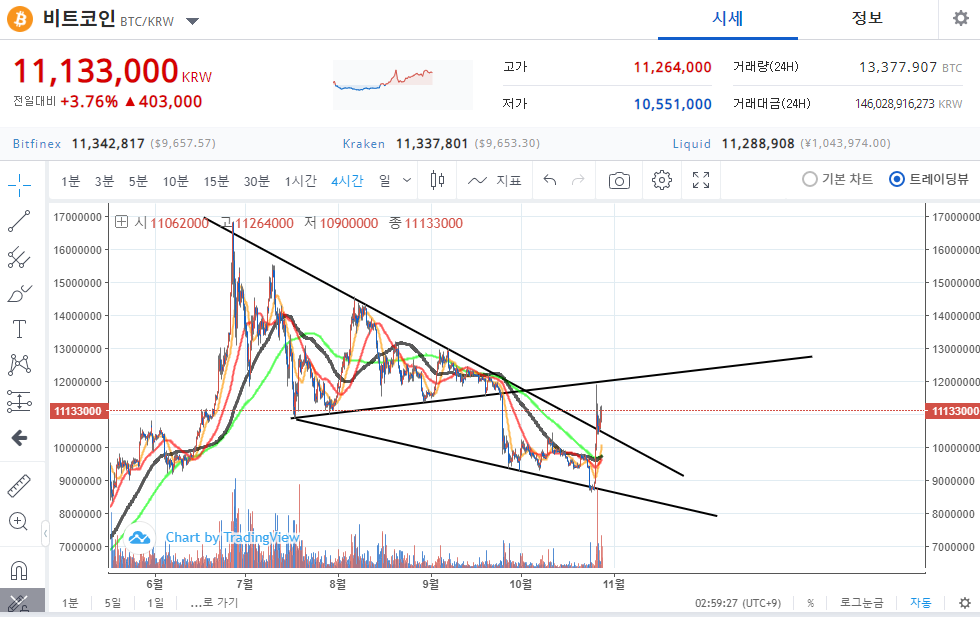 2019/10/27 - [비트코인(암호화폐) 아이디어] - 비트코인 시세 전망 차트분석 <19.10.27. 22:01>