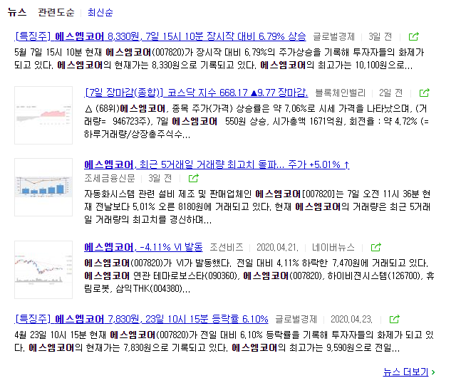 에스엠코어 주가는 삼성에스디에스 주가와 유사한 흐름을 보이고 있는데요, 이것은 4차산업과 연관된 스마트팩토리 관련주의 흐름이 유사하게 흘러간다는 것을 나타내는 것 같습니다.