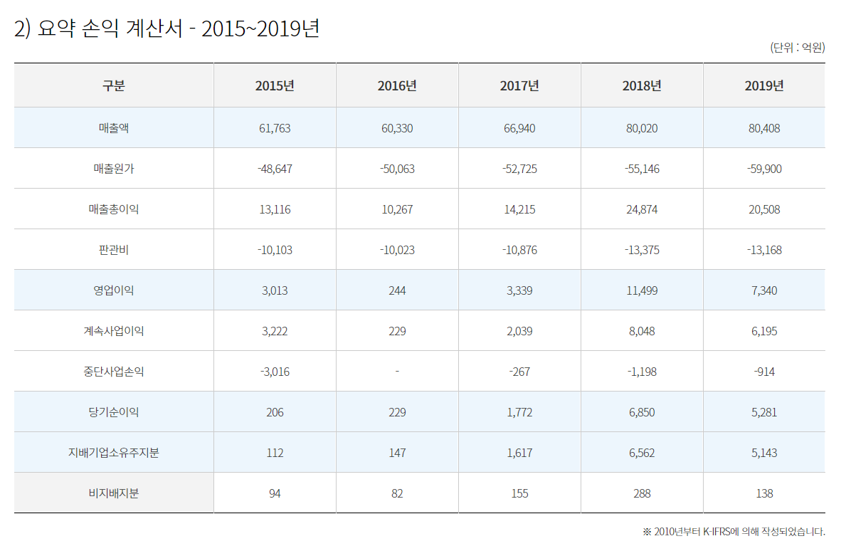 2019년에 하락하던 주가가 상승반전할 때도 있긴 했지만, 다시 재차 하락한 모습이네요.