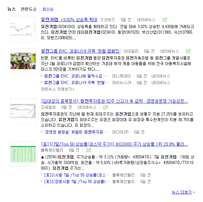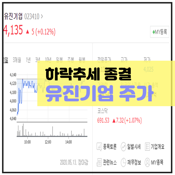 유진기업 주가는 2018년 5월 고점갱신 이후, 최근까지 계속 하락하였습니다.