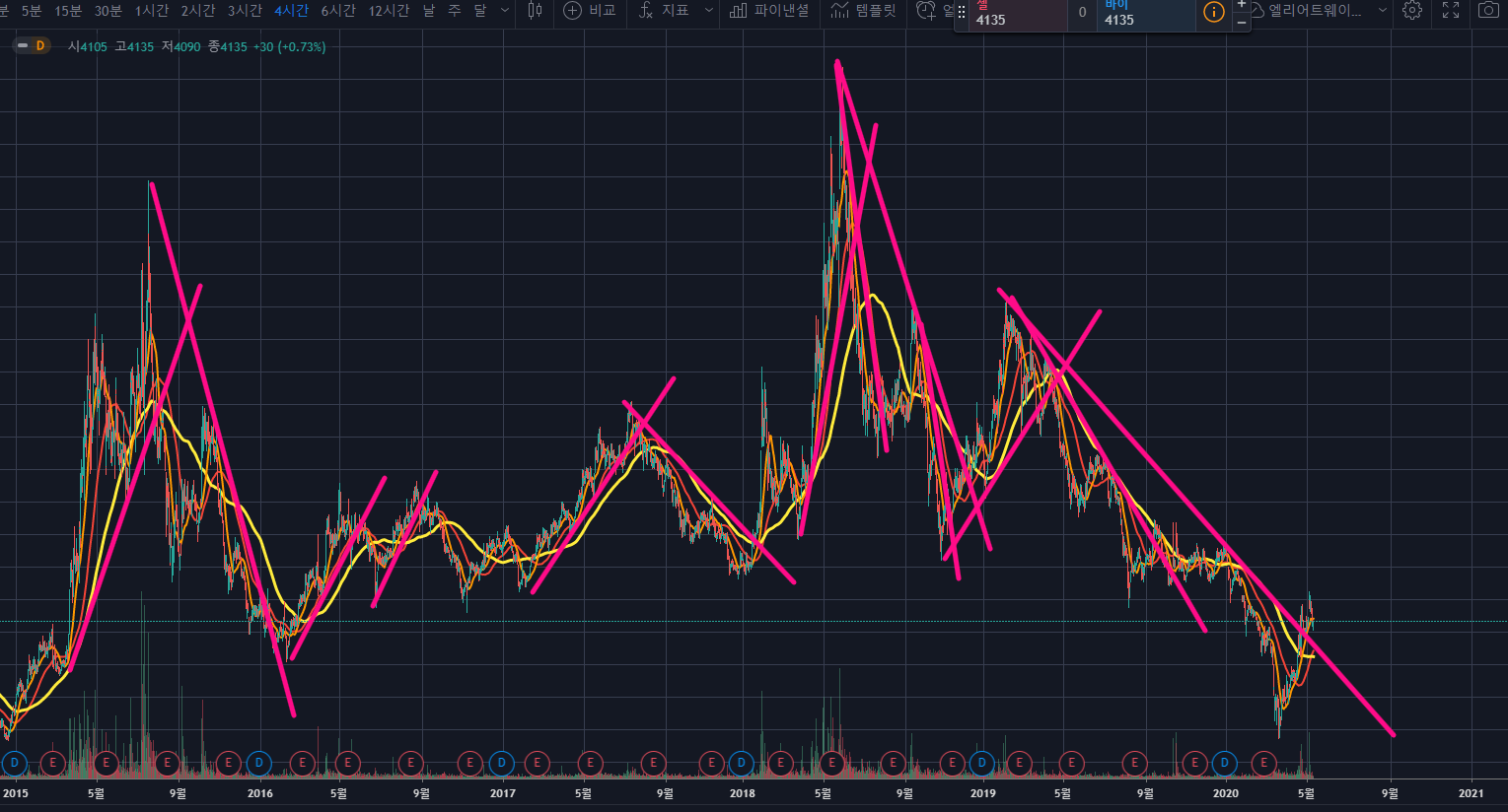 2020/03/02 - [트레이딩 이야기/1) 기술적 분석 방법(차트공부)] - 추세선을 그리는 추세매매는 어떻게 할까?