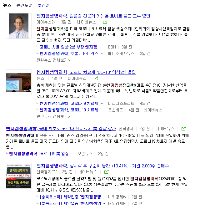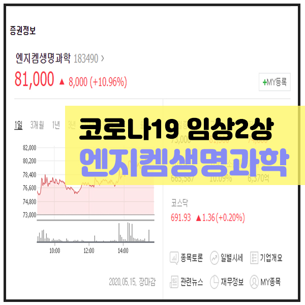 엔지켐생명과학은 위의 네이버뉴스에서도 보듯, 코로나19와 연관있는 종목입니다.