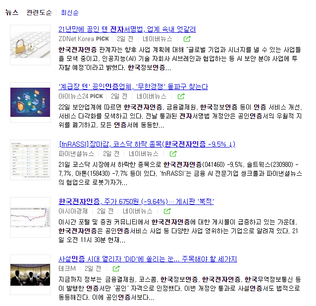 21년만에 공인 뗀 전자서명법으로 인해 공인인증서 폐지 관련주가 주목을 받고 있습니다.