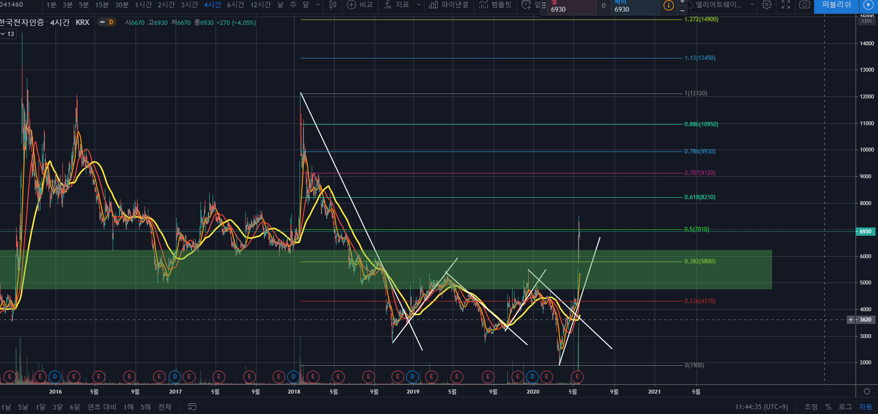 4천원 후반~5천원 초반에서 안정적 지지를 하는 모습을 보고 매수하였다면, 8천원정도까지는 상승할 수 있어보입니다.