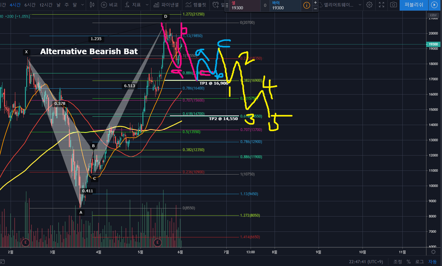 이후 C파동 하락하여 Alternative Bearish Bat의 TP1을 달성하고,