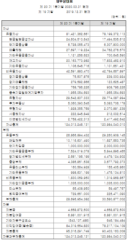 자산은 증가하고 부채는 감소하였네요. 부채의 자산대비 비중은 적지는 않지만 괜찮은 편으로 보입니다.