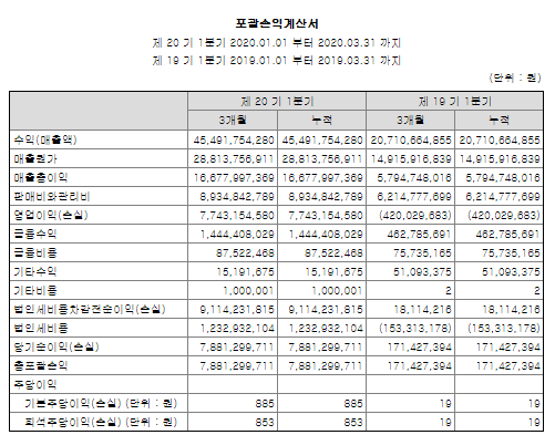 매출액, 영업이익, 당기순이익이 모두 폭발적으로 상승하였습니다. 실적이 매우 좋네요.