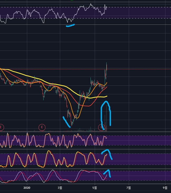 지금은 하락이 임박했음을 알려주는 시그널들이 여럿 있으니 조심하는 편이 좋아보이네요.