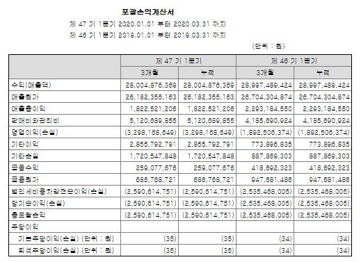 매출액은 전년대비 3.5% 감소