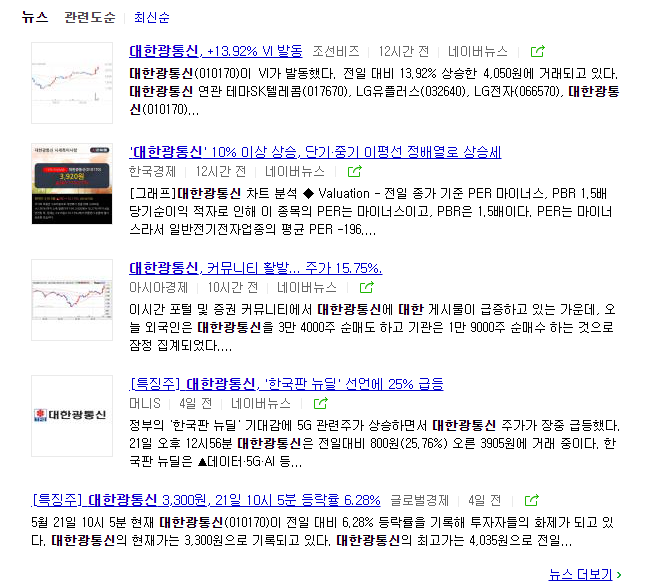 대한광통신은 '한국판 뉴딜' 선언에 25%급등한 모습입니다.