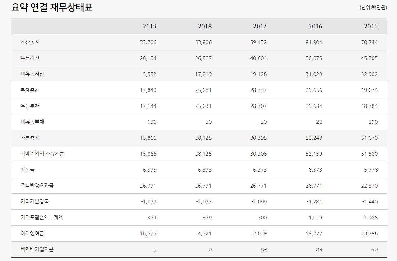 자산과 부채가 큰폭으로 감소하였습니다. 부채의 자산대비 비중읜 절반을 넘어가네요.