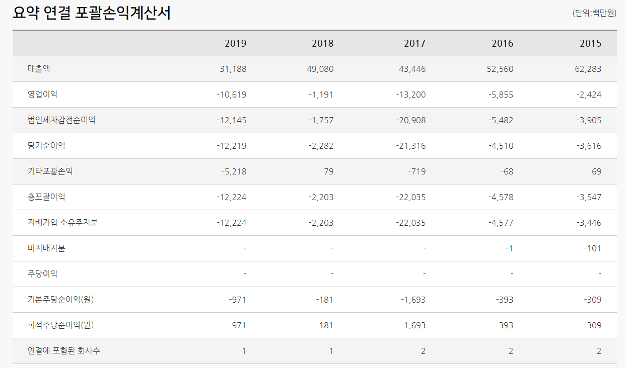 자산과 부채가 큰폭으로 감소하였습니다. 부채의 자산대비 비중읜 절반을 넘어가네요.