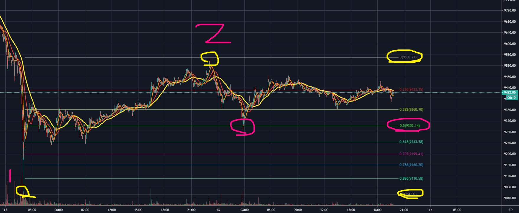 해당 종목은 바이낸스 BTCusdt 선물차트로 피보나치 되돌림 0.707수치에서 지지를 받고 반등한 모습입니다.