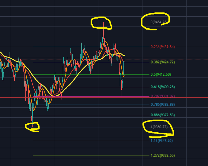 위의 경우는 피보나치 0.5되돌림에서 저항맞고 반락한 모습입니다.