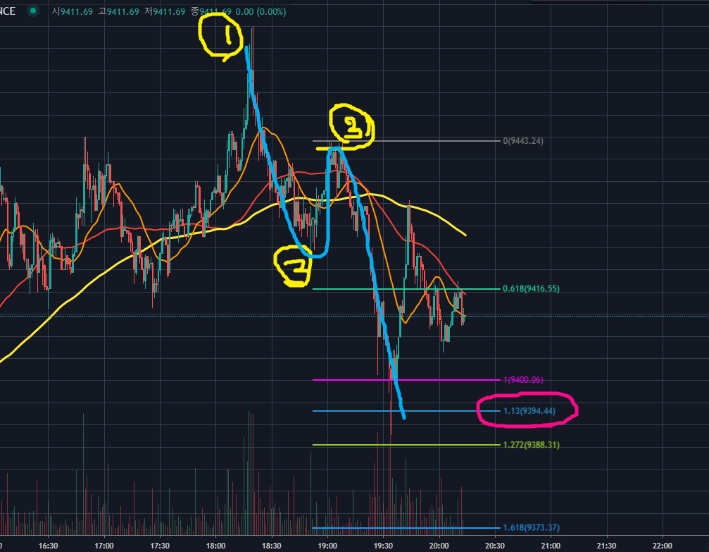 이렇게 눈에 띄게 0.707로 되돌렸지만, 저의 경우 황금비율인 0.618에서 저항맞았다고 보는 편입니다.