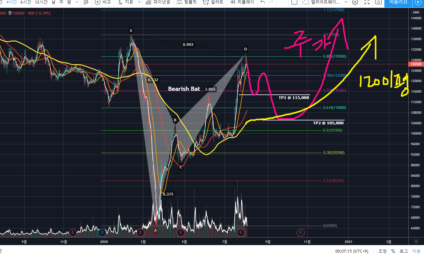 현재 가격에서 Bat 패턴의 TP2정도까지 하락할 것으로 보이며,