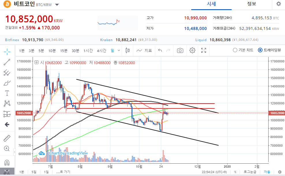 2019/10/30 - [비트코인(암호화폐) 아이디어] - 비트코인 시세 전망 차트분석 <19.10.30. 22:00>