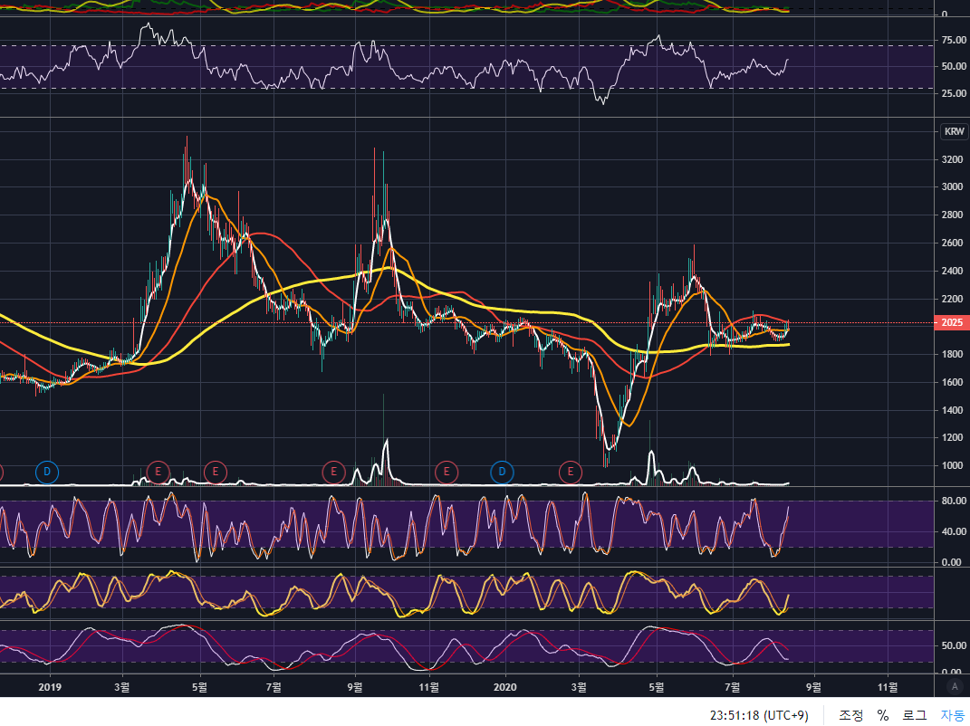 20년 6월 1일 2600원 가까이까지 큰 상승을 하다가 현재 조정중에 있는데요.