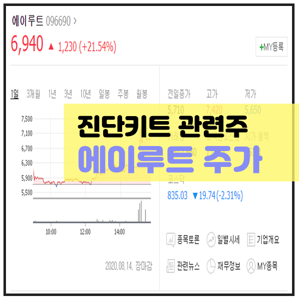 에이루트 주가는 20년 3월 2300원대의 저점을 찍고 반등중에 있습니다.