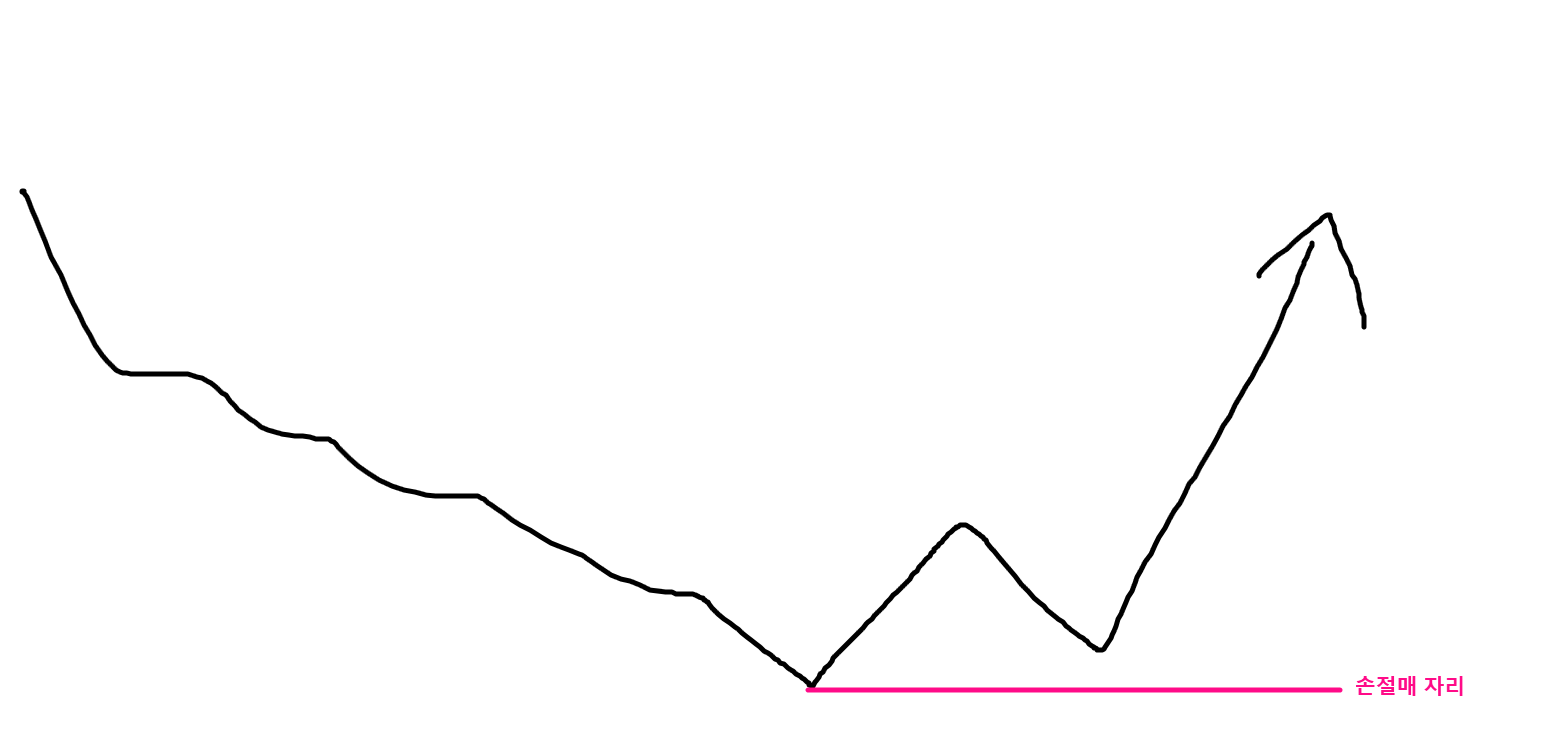 보통 하락하던 주가의 상승반전을 파악하는 기술적분석에서 엘리어트 파동이론 1파 상승 후 2파 조정 혹은 저점을 높이는 쌍바닥, 역헤드앤 숄더등에서 저점이 갱신되지 않으면 상승한다고 봅니다. 그렇기에 손절매 자리는 직전 저점이며, 이 손절매 자리가 짧을 수록 손해를 보더라도 손해금이 적기에 매매에 유리합니다.
