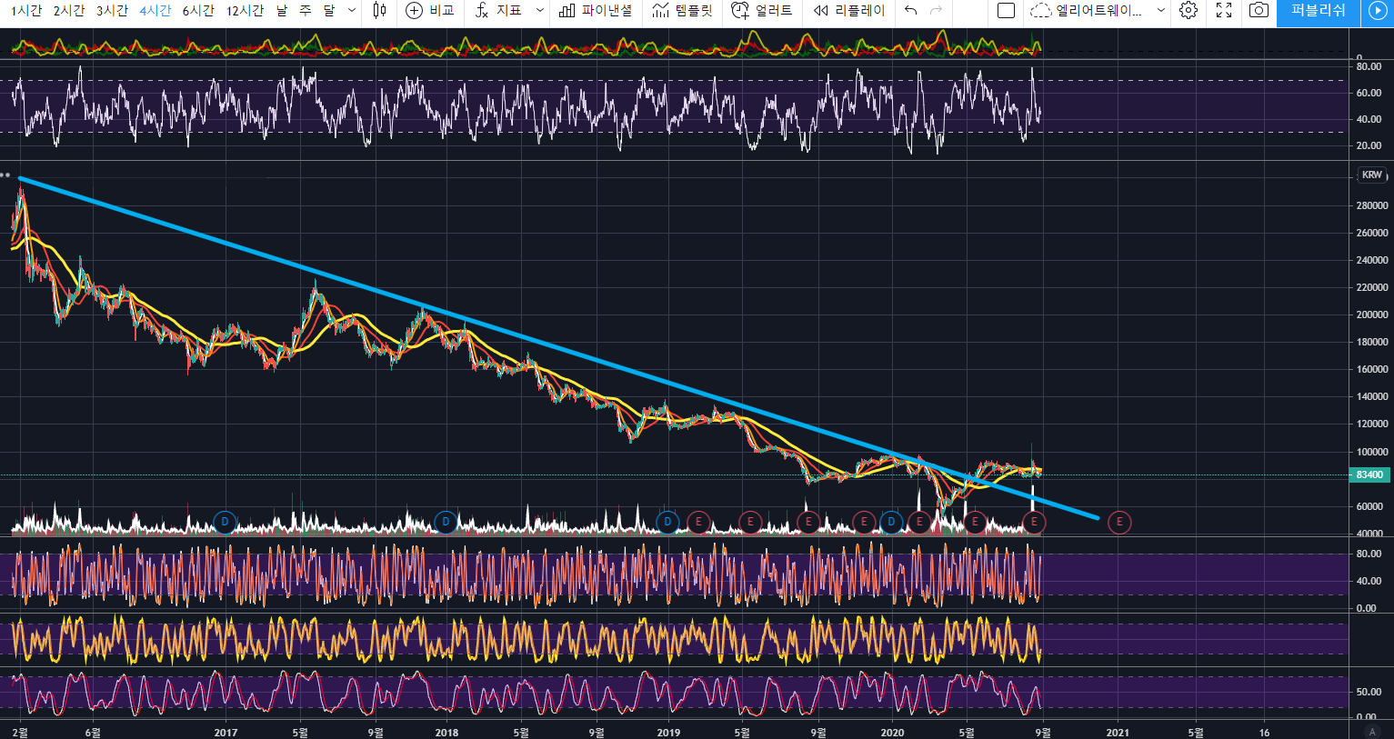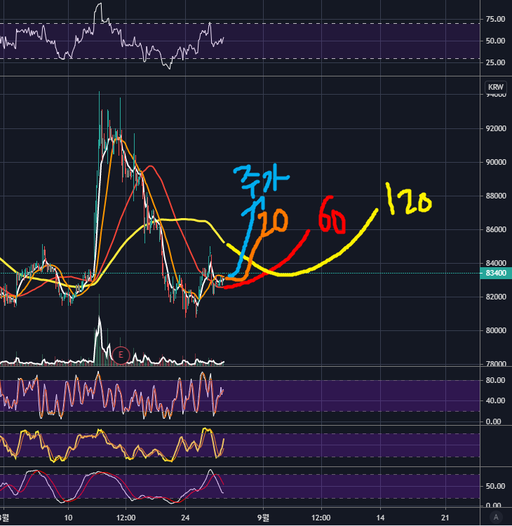 지난 8월 1일 저점 분석 후 94000원대를 찍고 다시 하락하였는데요,