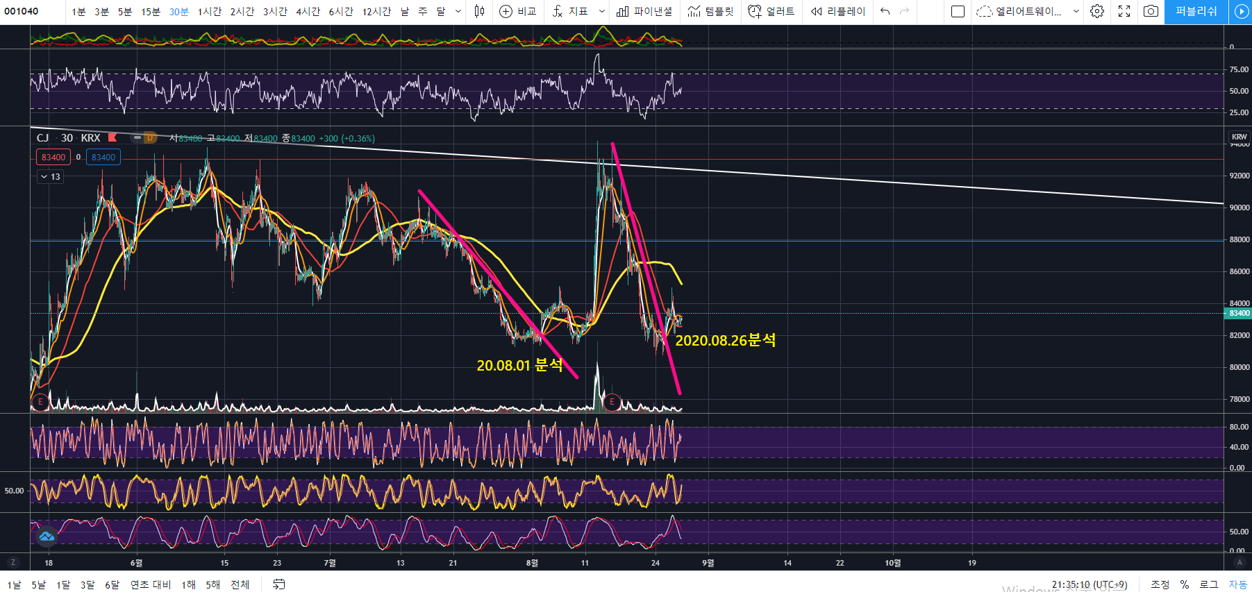 위는 지난 8월 1일 CJ 분석입니다. 이 분석과 같이 보시면 도움이 될 것입니다.