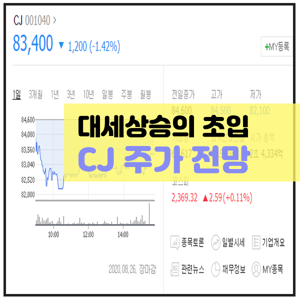 2020/08/01 - [트레이딩 이야기/5) 주식 아이디어] - CJ 주가 시세 전망 차트분석 001040 <저점을 다지고 상승을 준비>