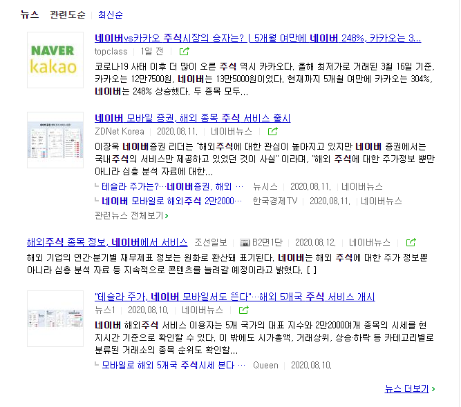 네이버 폭등에 대한 기사가 많고, 황금빛 미래가 펼쳐진 것처럼 보이네요.