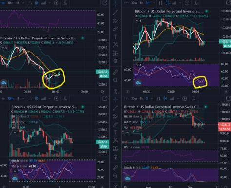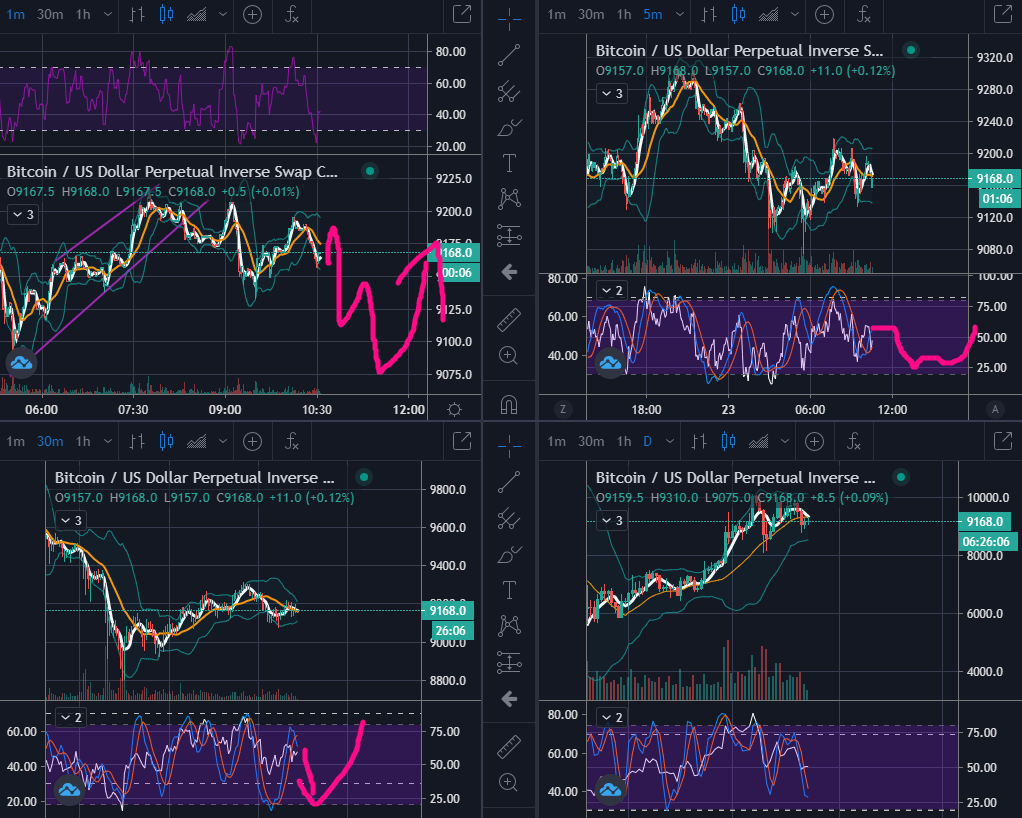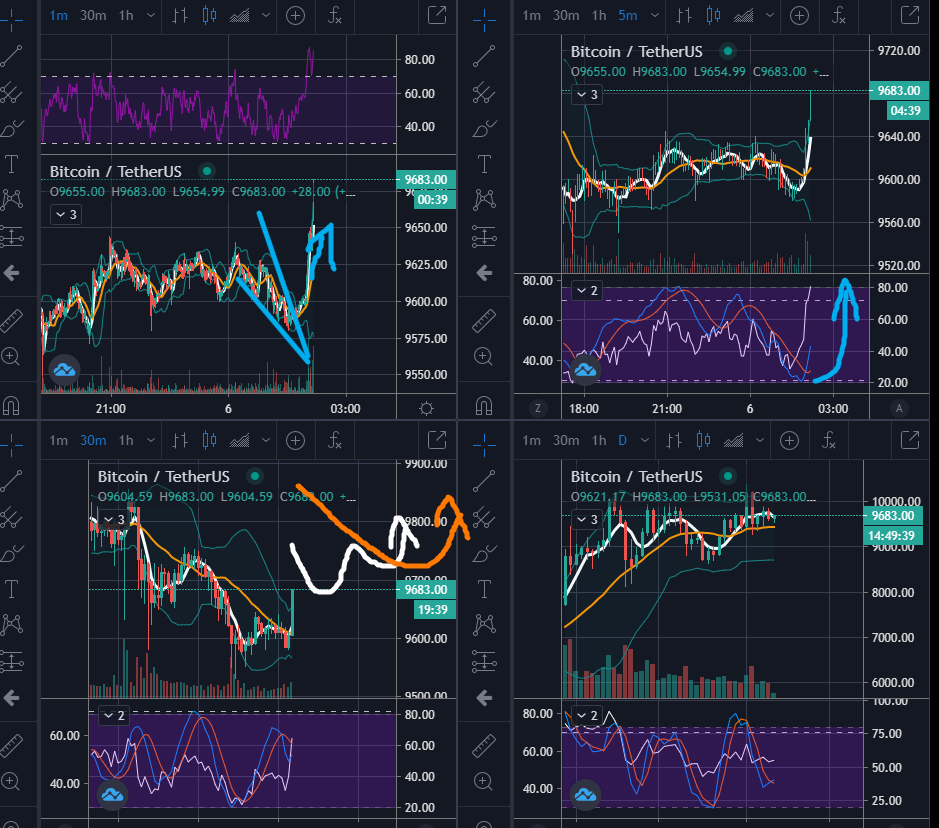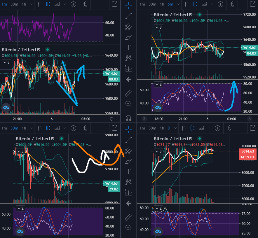 이렇게 읽을 수 있으며, 1분봉과 5분봉은 강한 상승이 임박했음을 시그널로 보내고 있습니다.