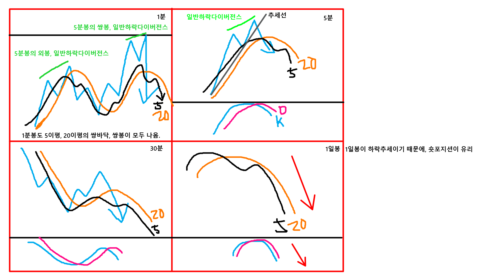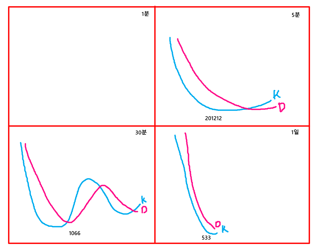 대소파동은 다른 타임프레임과 스토캐스틱을 비교하는 것이구요.