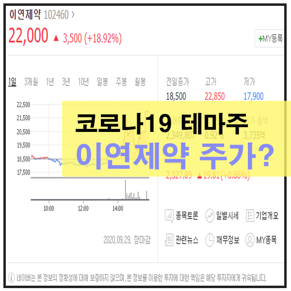 코로나 테마주로 강하게 상승한 이연제약 주가에 대한 분석을 하도록 하겠습니다.