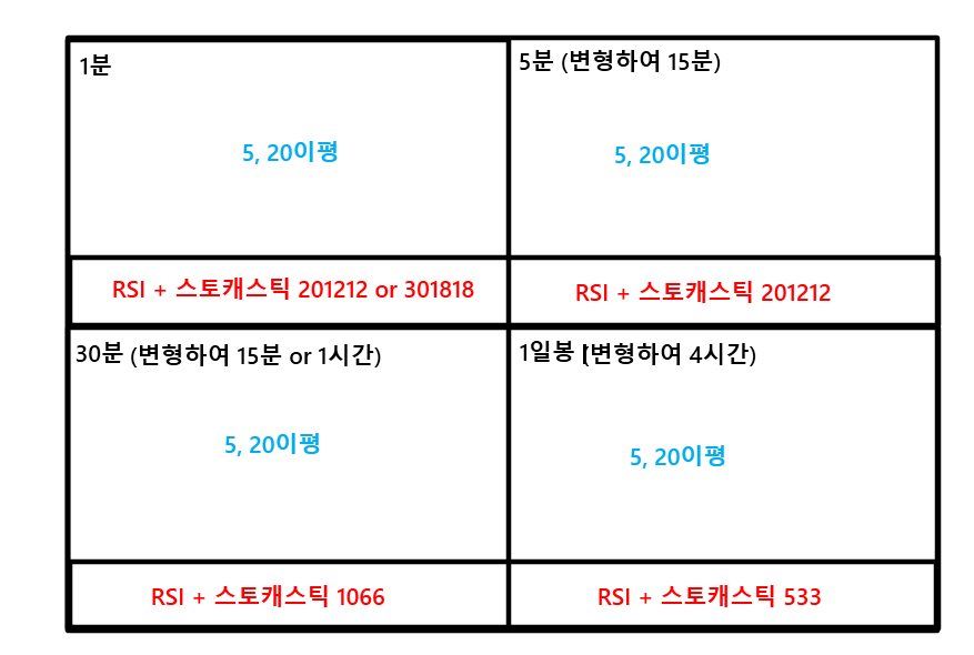 4분할 차트를 활용한 매매(1분, 5분, 30분, 1일봉)
