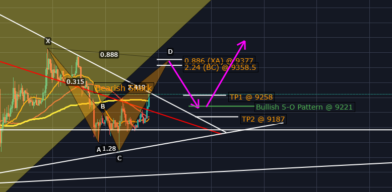 돌파한다면 Bearish Shark Pattern의 PRZ에서 저항 후, 눌림(하락 추세선 리 테스트)한 다음 재차 상승할 것으로 봅니다.