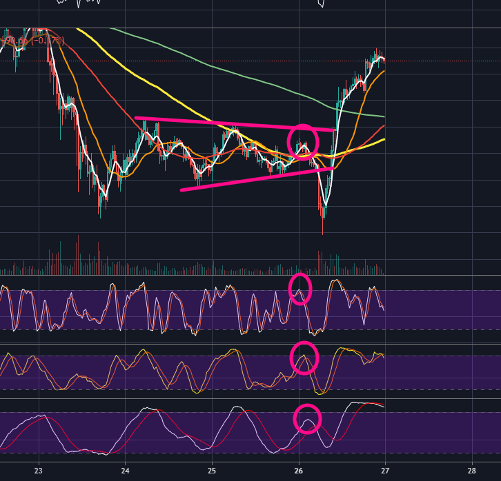 그럼 삼각수렴 후 하락하는 것을 어떻게 알았는지 설명드리겠습니다.