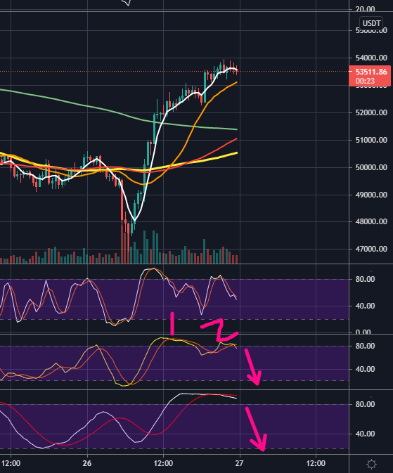 이후 매수세가 계속되기에 홀딩하였으며 52200달러에 전량 매도를 하고 그 이상의 상승분은 관망을 하였네요.