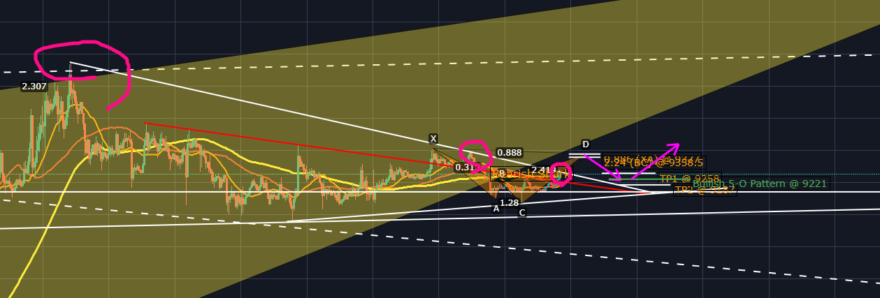 PRZ에서 매도 진입하게 된다면, TP1에서 50%의 물량을 줄이고 트레일링 스탑으로 따라가면 좋을 것 같네요.